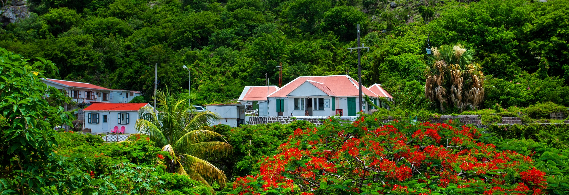 Tett vegetasjon dekker det meste av Sabas dramatiske fjellsider og daler og inniblant dette finner du små bosetninger.
