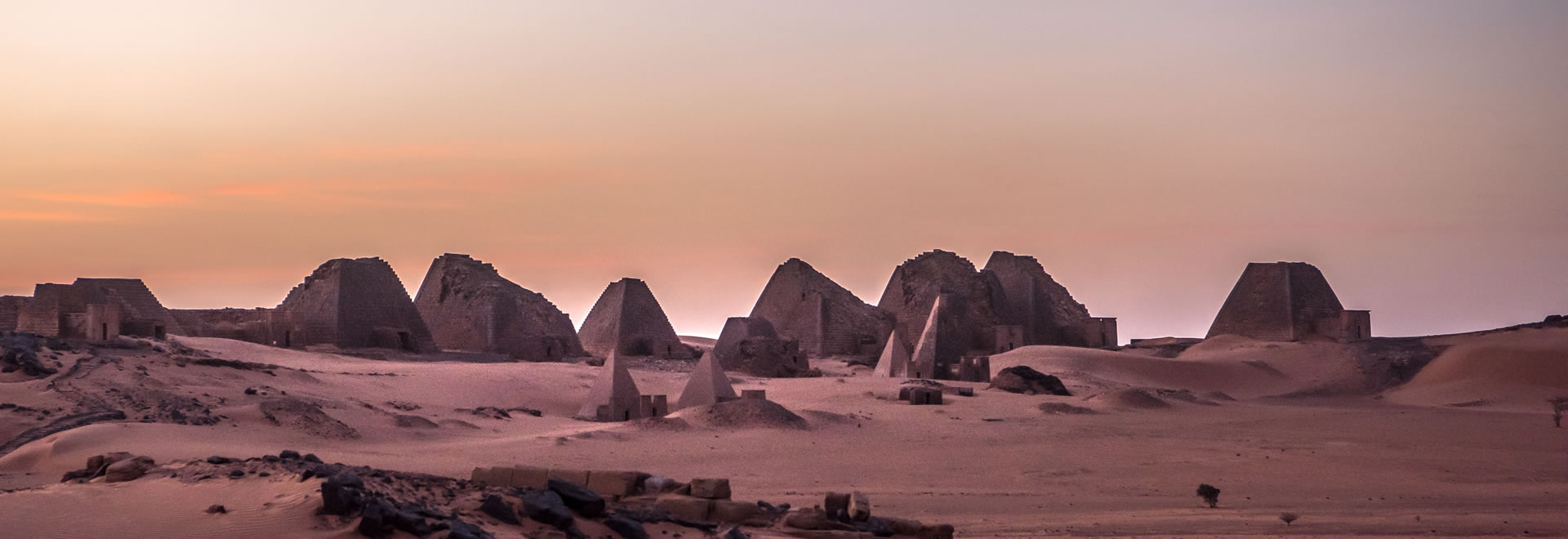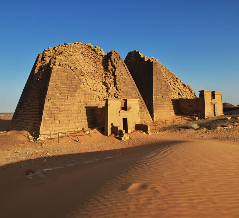 • Pyramidene i Meroe - Den desidert mest populære turistattraksjonen i landet, pyramidene i Meroe, er et av de siste gjenværende symbolene fra en gammel sivilisasjon. Bygget av de meroitiske faraoene rundt 500 f.Kr., er pyramidene forskjellige fra sine kolleger i nabolandet Egypt. De har bratte mursteinssider og vises i grupper på 12. Området er ikke på langt nær så turistifisert som de egyptiske landemerkene, og reisende trenger ikke å kjempe mot turister for å oppleve dem. Reisende har lov til å gå inn i pyramidene, der eldgamle graffiti og hieroglyfer kan sees. Den beste tiden å besøke er rett før solnedgang når solen lyser opp strukturene med en gylden fargetone. Det finnes overnattingssteder i nærheten for reisende som ønsker å bli over natten.