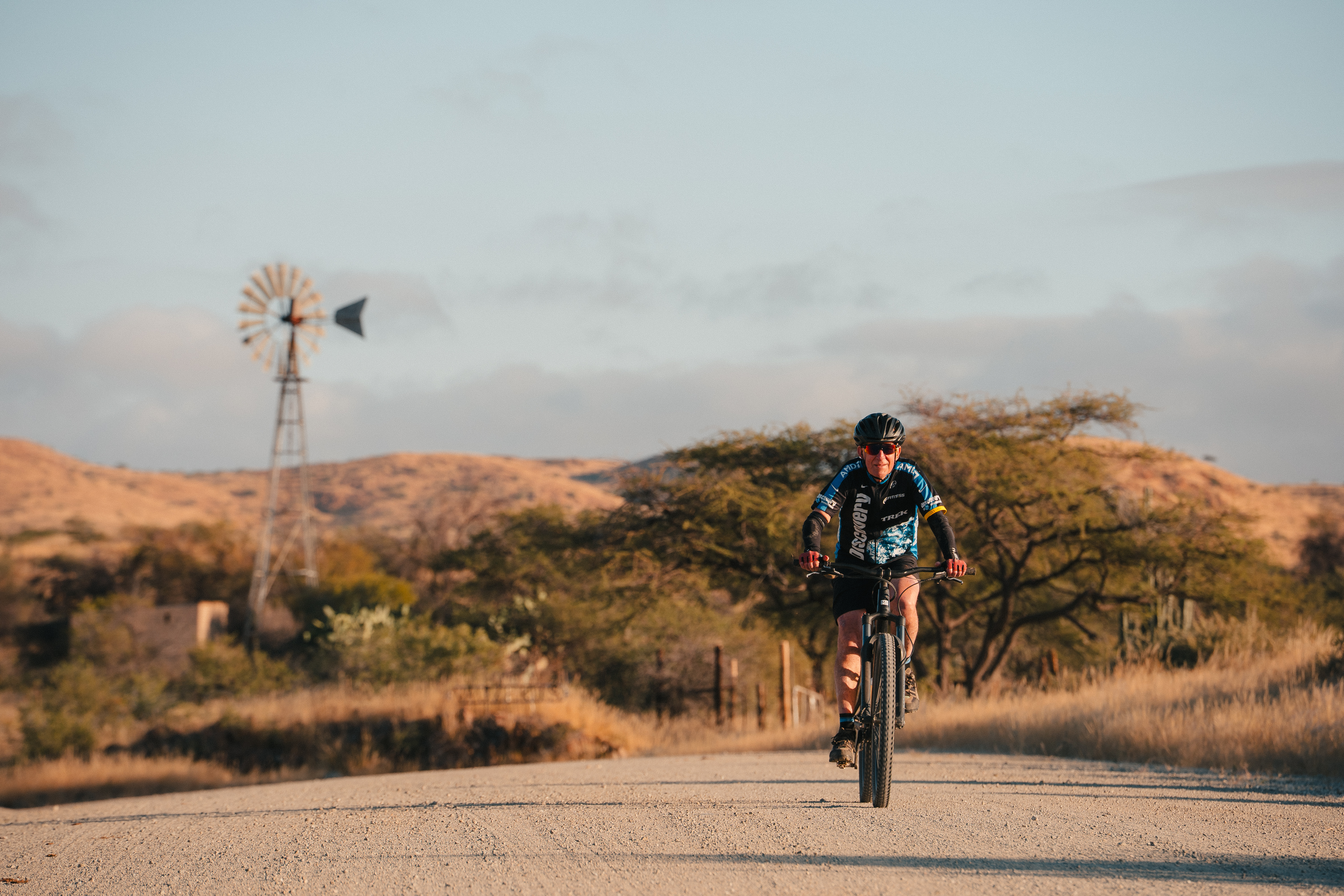 Route: The cycling is approximately 90 percent on open public gravel/dirt roads or off road and 10 percent on paved roads. There is a mix of terrain, including some rolling rides, flat, downhill and uphill sections. The support vehicle is available, especially for the more challenging sections. Most of the cycling on roads is with little traffic, though there may be some busier sections. The last 2 rides are on jeep track roads on a reserve.