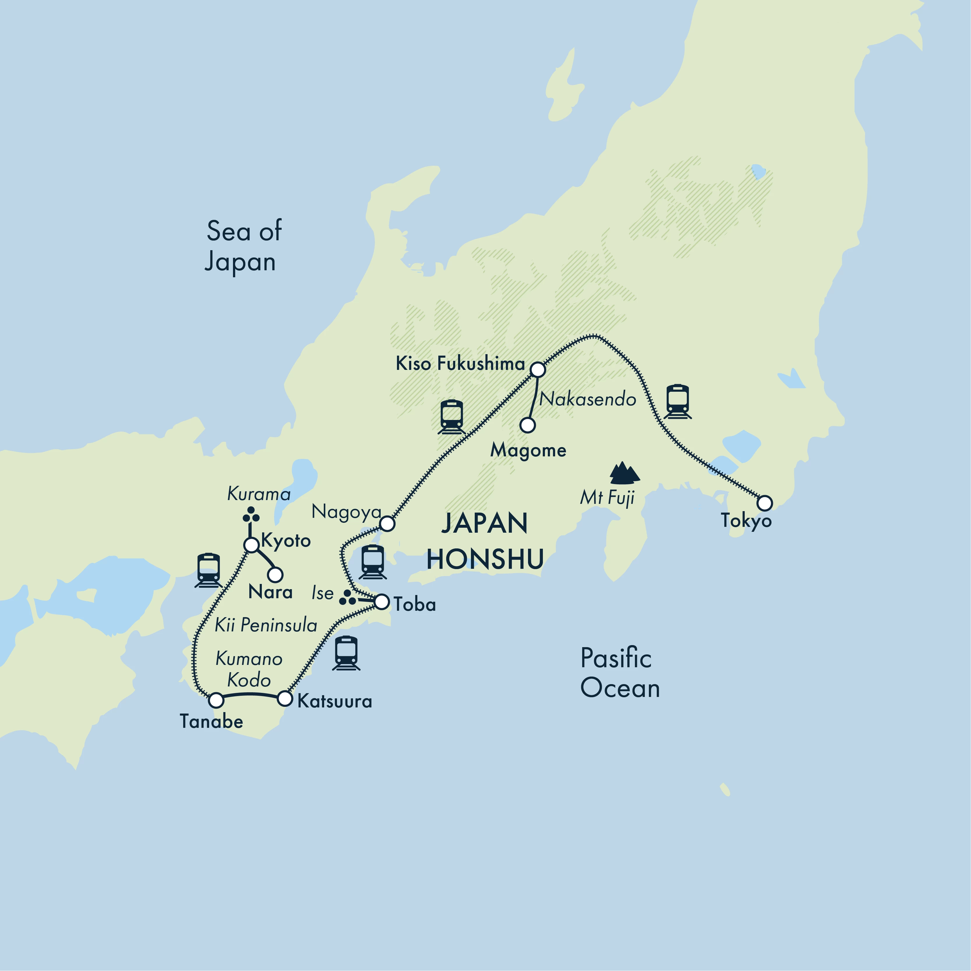 After breakfast, we get ready for a short walk to return to Katsuura station on foot (with luggage), where we begin our journey by train to Toba in the neighbouring Mie prefecture.