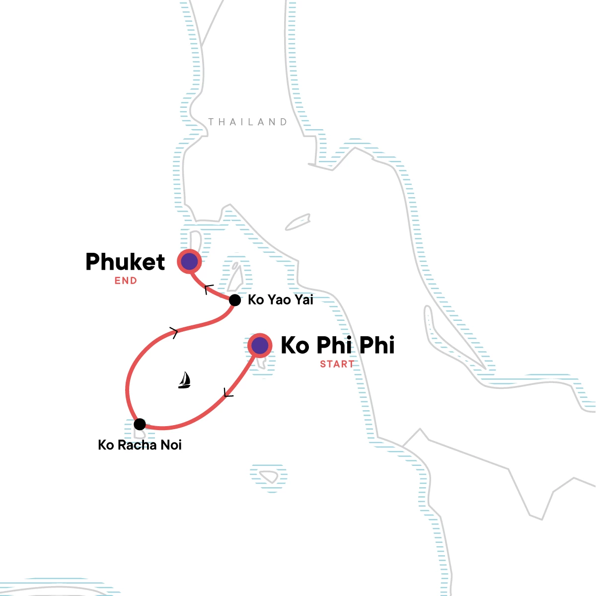 Sail the Andaman Islands of Thailand. Island visits to Ko Phi Phi Don and Le, Ko Raja Noi, and Ko Yao Yai. Snorkelling equipment and two kayaks.