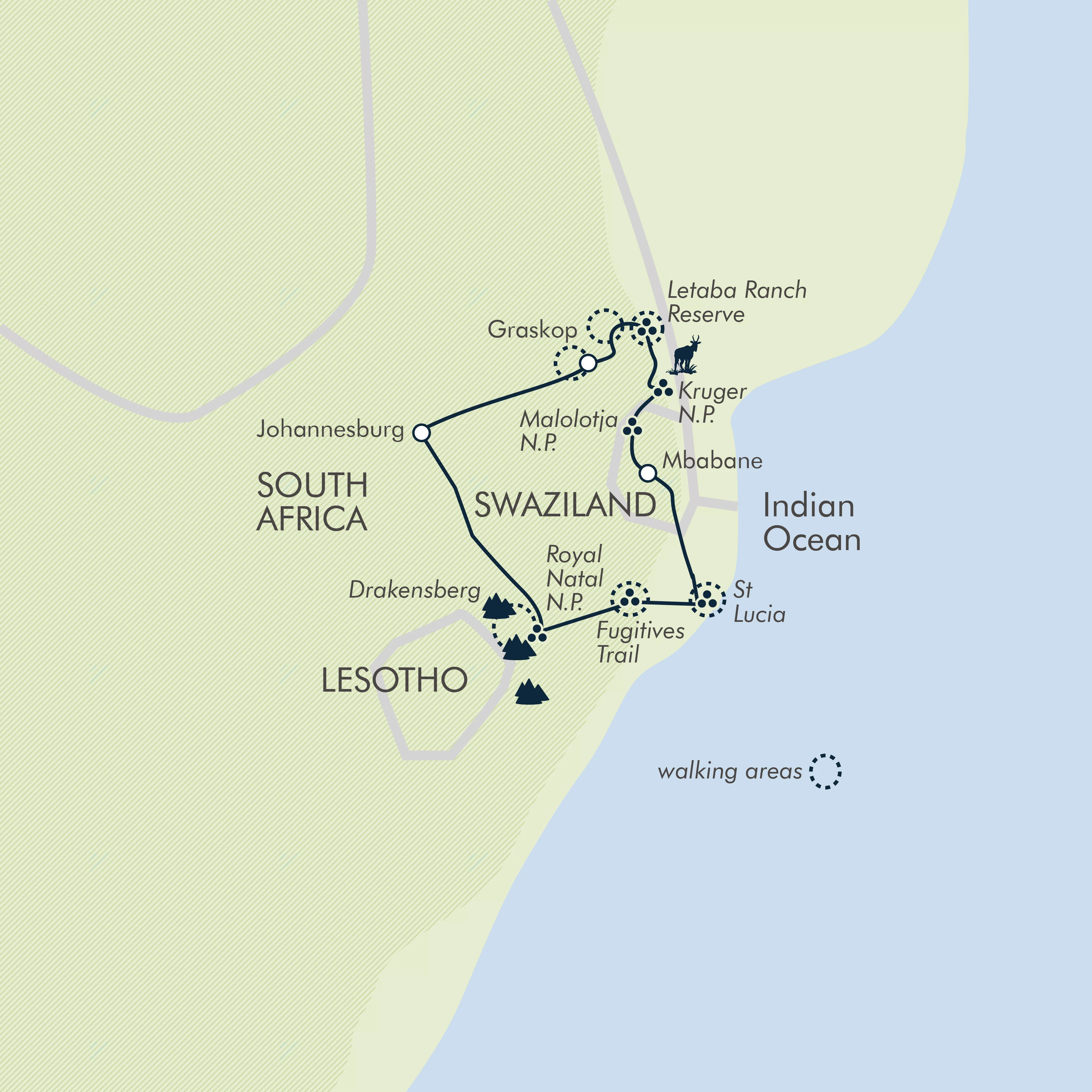 Journeys: There are a few long drives (the longest being six to seven hours on the first and last days) but the reward is a trip that offers an amazing variety of walking through diverse scenery, plus exciting game viewing, in a comparatively short time.