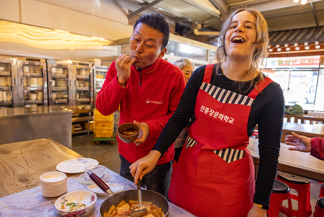 Immerse yourself in the choose-your-own-adventure atmosphere of South Korean food on this eight-day adventure from bibimbap to bustling street markets, where your local leader will guide you to the best stalls. The food scene here is relaxed and welcoming, encouraging you to explore and discover your own favourite flavours. Enjoy dishes loaded with toppings, crispy Korean fried chicken paired with craft beer, silky glass noodles with fresh salads and some delicious variations of kimchi. As you move around the country, you'll also uncover the rich heritage that makes South Korea's culinary scene so special.