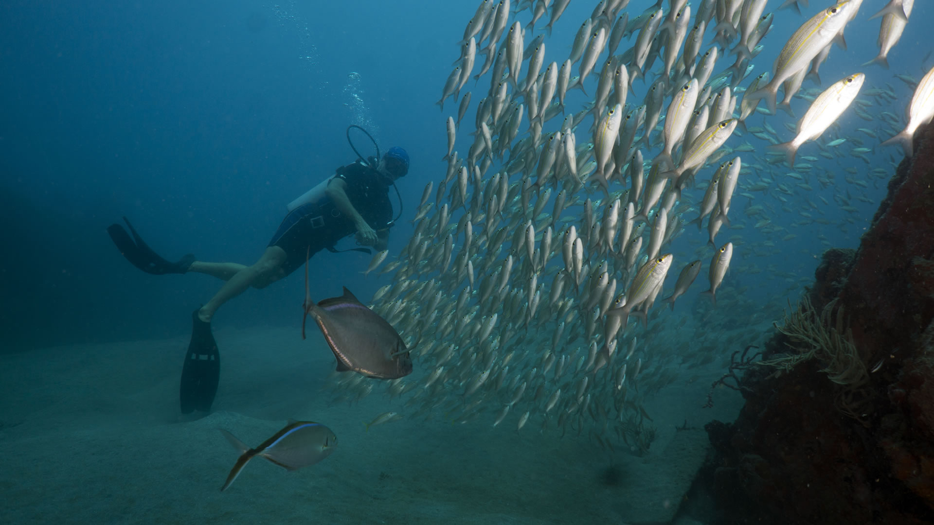 • Korallrev og mangfold: Dykkere kan utforske spektakulære korallrev som er hjem for et mangfold av marint liv, inkludert tropiske fisker, skilpadder, rokker og haier. Revene er i utmerket tilstand på grunn av øyas forpliktelse til bevaring, noe som gir en levende og fargerik opplevelse under vann.