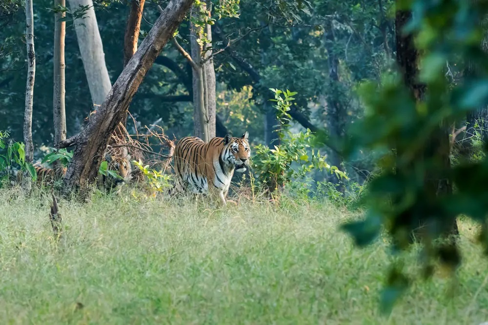 Madhya Pradesh Kanha nasjonalpark, som dekker omtrent 1945 kvadratkilometer, er et enormt, bølgende terreng med vidstrakte gressletter, episke platåer og steinete skråninger som er hjemsted til et bredt utvalg av dyreliv, inkludert den bengalske tigeren. Nyere forskning tyder på at Kanhas salskog har en sunn voksende bestand på opptil 125 tigre, noe som gjør den til en av de beste parkene i India for tigerobservasjoner i naturen. Du kan dra dypt inn i skogen for en ekte safariopplevelse.