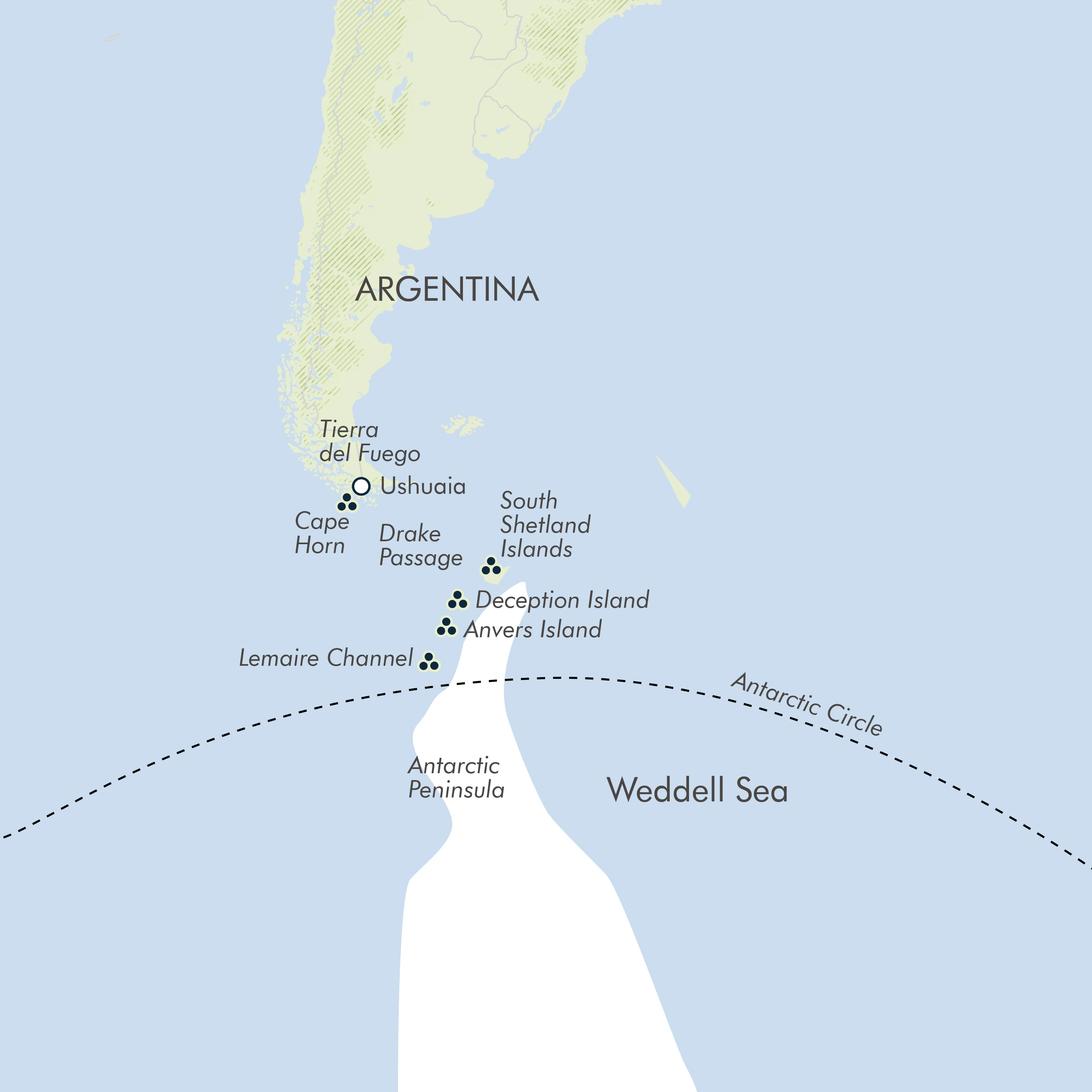 All Polar itineraries should be treated as a guide only - it is possible that, amongst other things, the capricious nature of wind, visibility and ice, intelligence from previous sailings, changes in local landing regulations or the expert opinion of the crew onboard may lead to adjustments to the route published.