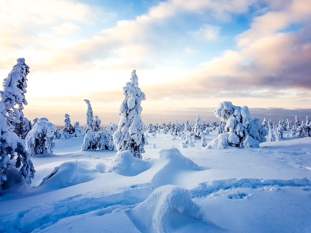 Explore the remote snowy wilderness of Oulanka National Park with a chance to see the Northern Lights